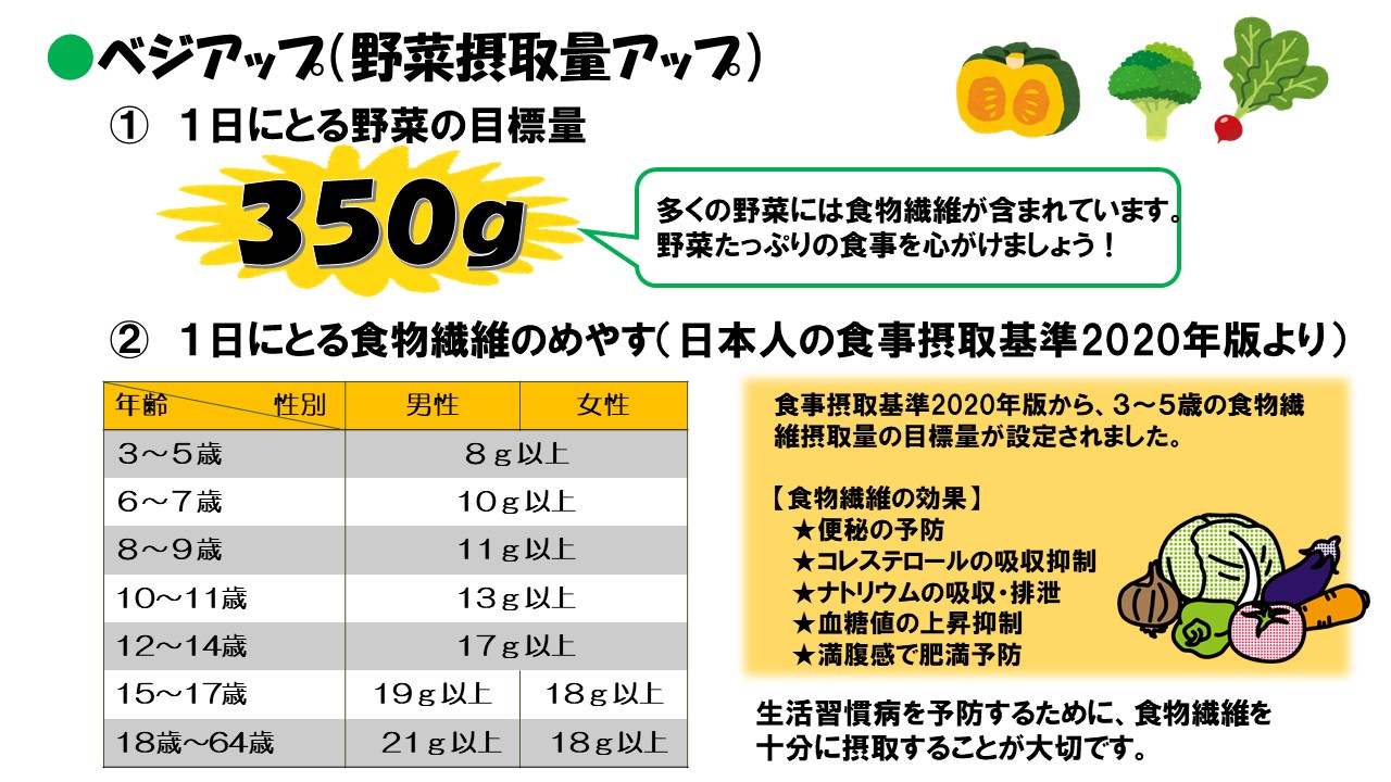 県では、毎日の健康づくりに役立てていただくため、減塩・べジアップレシピを掲載しています。ぜひ毎日の献立にご活用下さい。