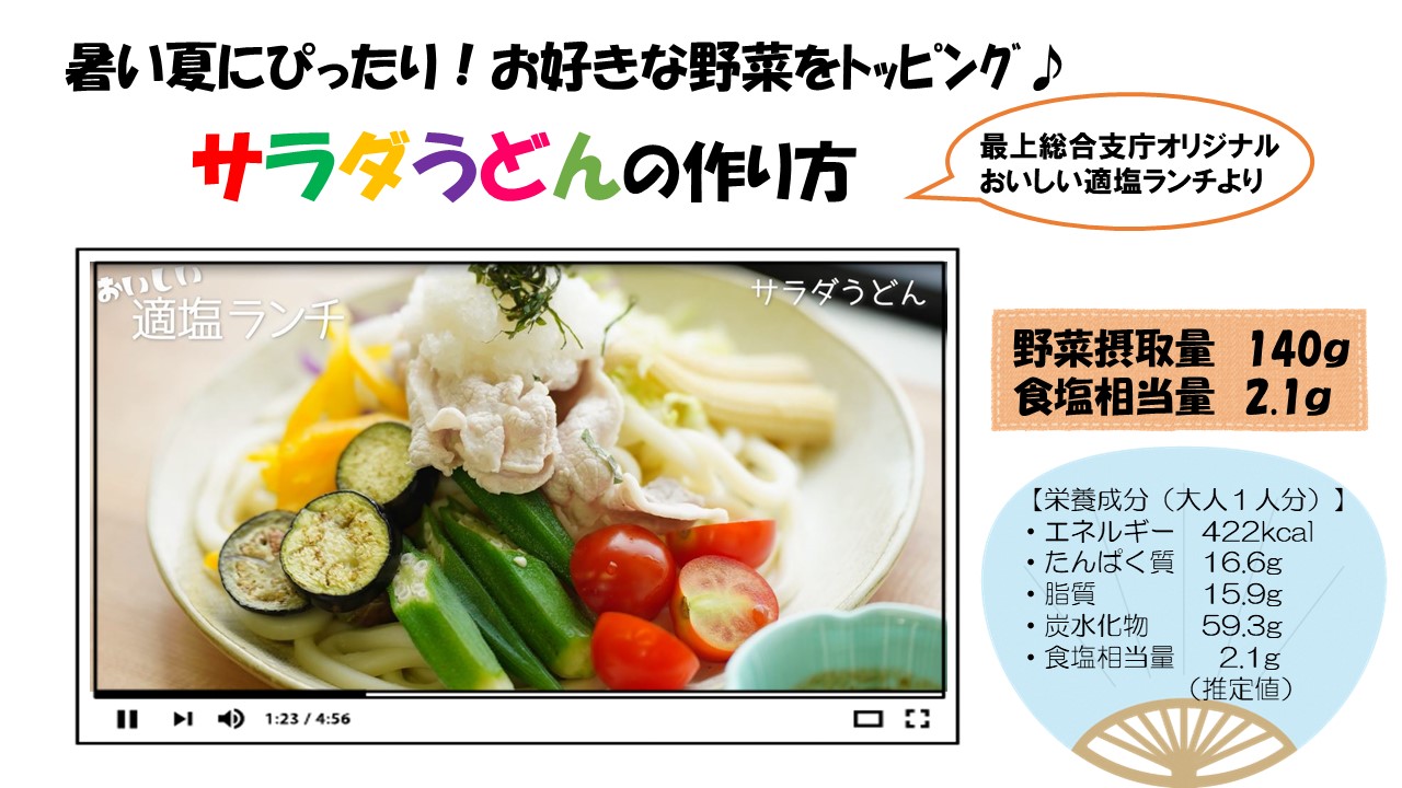 サラダうどんの作り方動画を山形県公式YouTubeチャンネルにて公開しています。ぜひご覧ください!